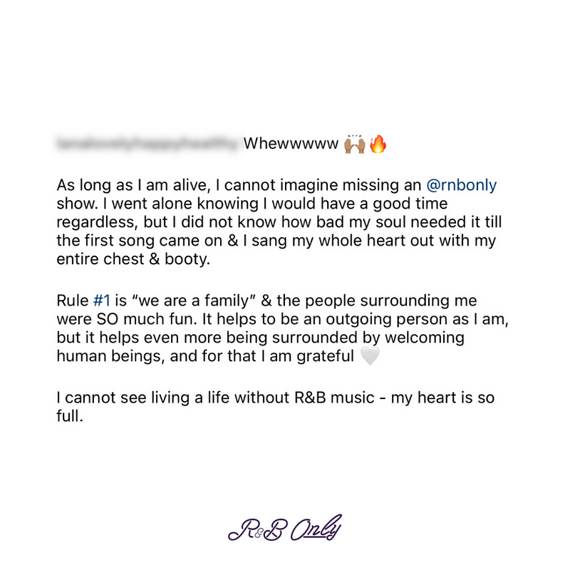 This focus on further developing our own brand identity for R&B ONLY LIVE shows while finding product market fit allowed us to imagine the possibility of selling tickets to R&B ONLY FEST without announcing well-known talent. I had never heard of a music festival taking this approach so the thought of being an example of change in an industry where people continuously follow trends was enticing.
